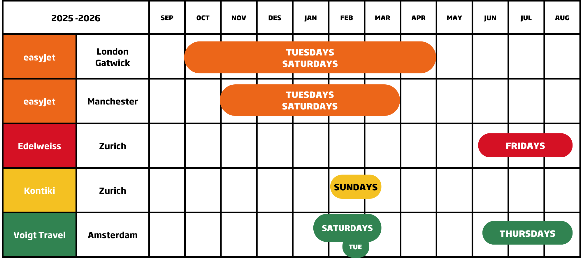 Charter flights from the UK and Netherlands have been regularly offered in recent years. Voigt Travel, a Dutch travel agency, provides trips to North Iceland in both summer and winter. The agency has offered these trips for several years.