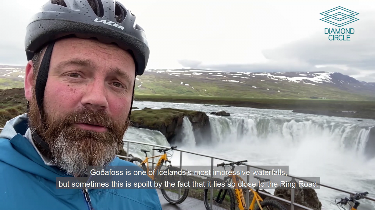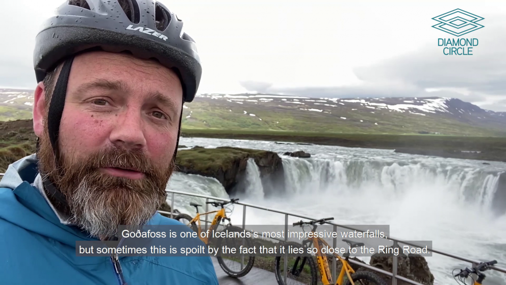 Júlli closes out his 5-day tour on the Diamond Circle with a visit to the scenic Goðafoss waterfall, located close to the Ring Road. Júlli goes on an e-bike ride, and it surprises him how easy it is!