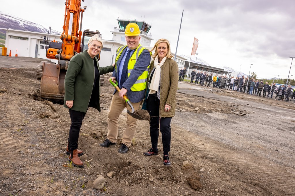 Fyrsta skóflustunga að stækkun flugstöðvar á Akureyrarflugvelli var framkvæmd í gær, þriðjudaginn 15.júní. Sigurður Ingi samgöngu- og sveitarstjórnarráðherra hlaut þann heiður. Í ræðu hans var einnig staðfest að nýtt flughlað sé fjármagnað ásamt því að útboð fari fram í lok júní.