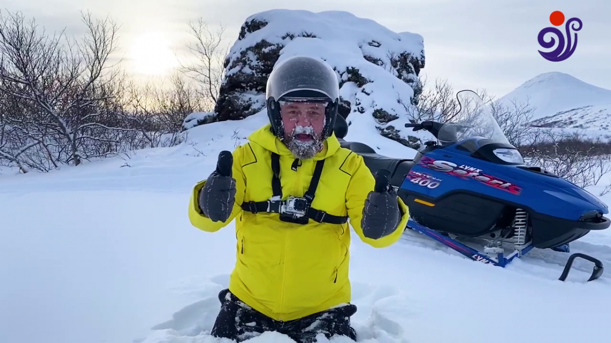 Júlli er í vetrarparadísinni við Mývatn og skellir sér í snjósleðaferð.